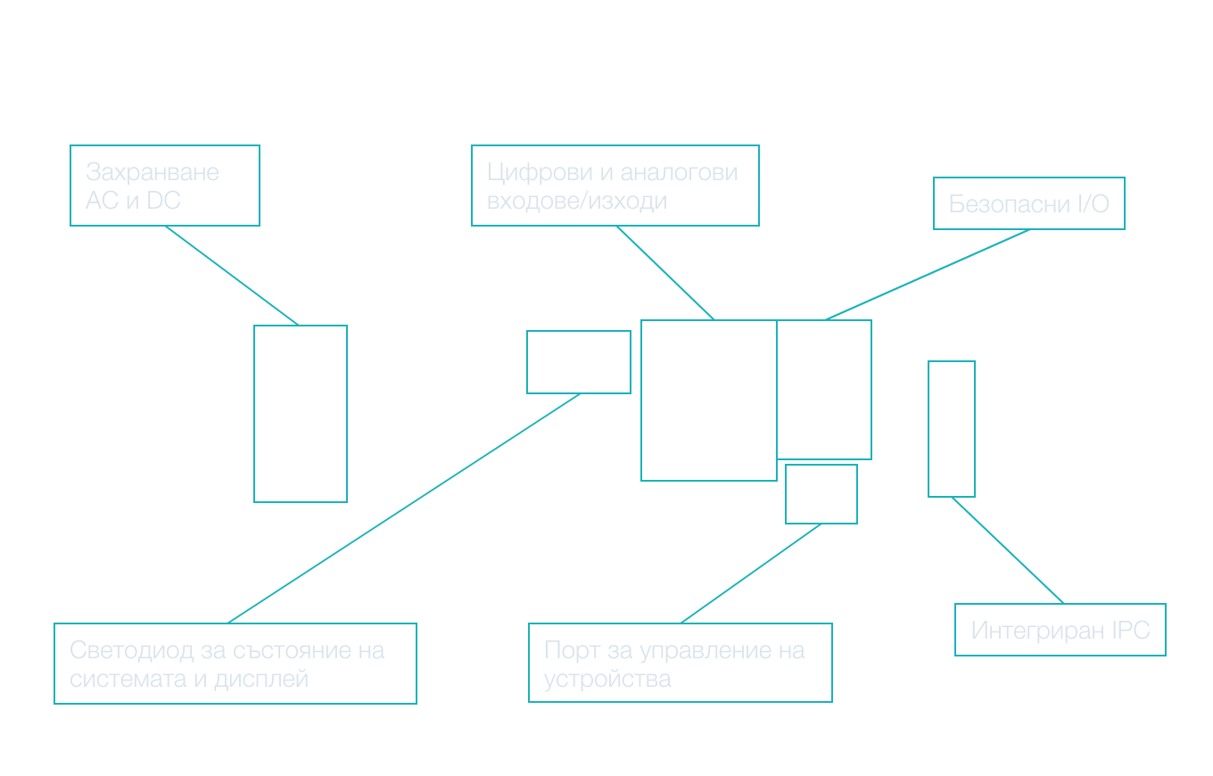 24 × 24V DC, 5A Цифрови: 16 входове/изходи по 1A всеки Аналогови: 4 входове/изходи [0–10V] или [4–20mA] |